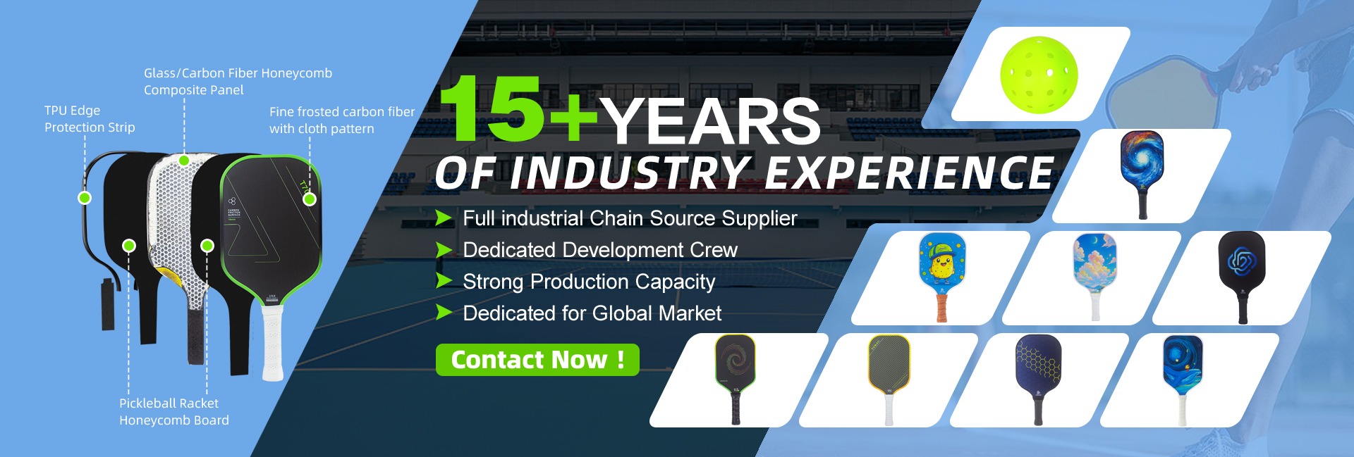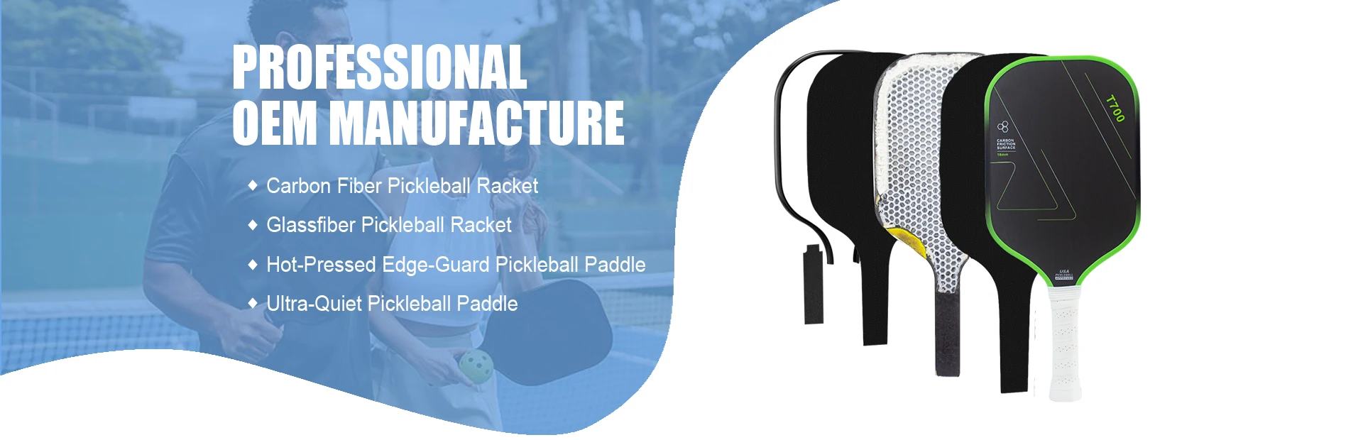 Productos principales:Paleta de pickleball de fibra de carbono, paleta de pickleball de fibra de vidrio, paleta de pickleball prensada en caliente, Pickleball, bloque de pickleball
